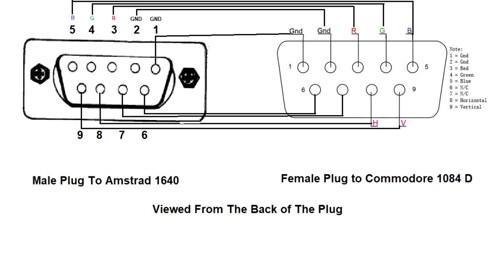 Commodore 1084 D 9 pin male Input matches the signals from the Amstrad.